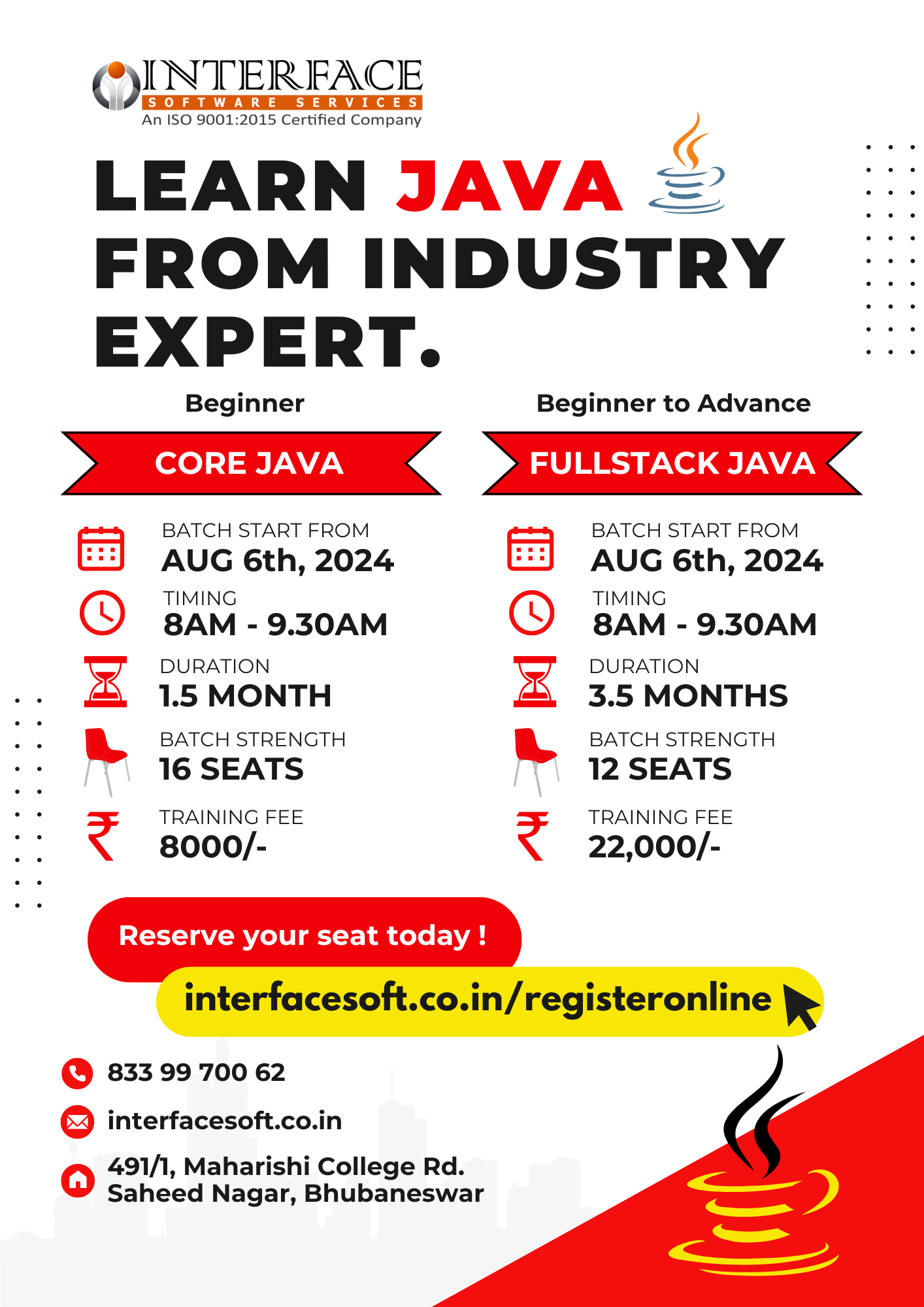 Interface Software Services (INSS) is a Bhubaneswar based oldest & trusted software development & training center is one such place that which provides a complete java industrial training in bhubaneswar for bachelor & master degree students. These live training sessions are presented by experts who presently working in the MNC company in this job role.